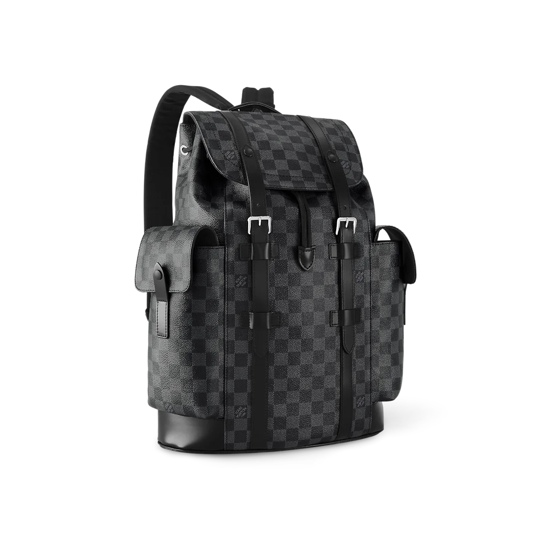 With its strong shape and generous size, the Christopher Backpack is ideally suited to both work and leisure. Channeling a hiking-inspired aesthetic, it has a durable coated canvas exterior and numerous pockets. Comfortable shoulder straps and a top handle add further functionality.